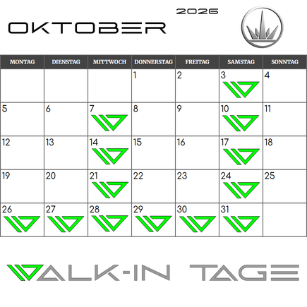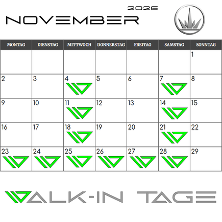 📅 Damit du’s nicht ausrechnen musst: Alle aktuellen Walk-In-Tage sind im Kalender farblich grün mit einem "W" markiert.